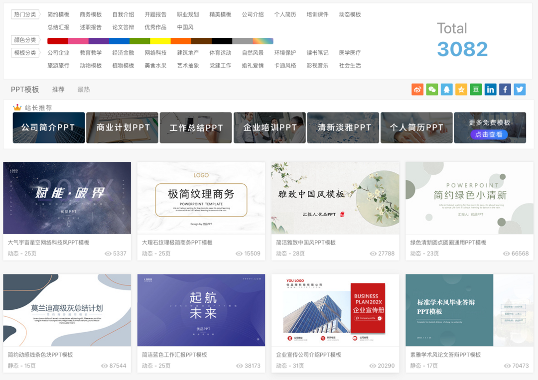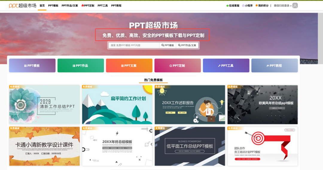 PPT超级市场这是一个号称下载永不收费的PPT资源网站,里面有各式各样的免费PPT模板资源,先不说数量,光模板类型就多达70多种,不管你是上班族还是学生都非常适用。