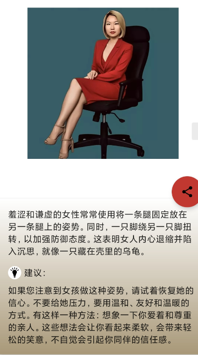 这个应用包含了大量关于不同肢体语言的含义和解释。用户可以轻松连接特定身体部位,并搜索任何动作以准确表达其意义。该应用在各种场合和方面都很有帮助,用户甚至可以在对话或对话中学习所有肢体语言的含义。他们甚至可以自己用肢体语言,巧妙地向伴侣传递信息和暗示,而不必直接说出口。
